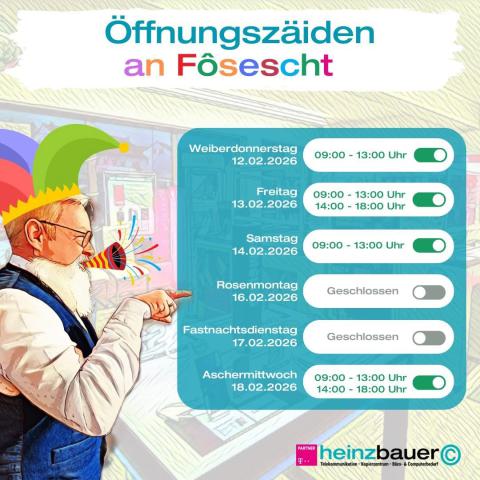 09:00 - 13:00 Uhr und 14:00 - 18:00 UhrPause von 13:00 - 14:00 Uhr